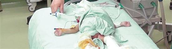 分离手术后,一个小宝宝被抱出来。