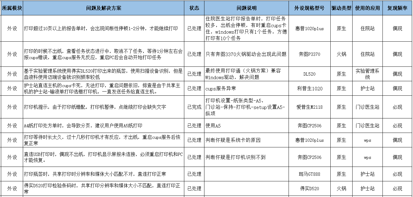 第一,大量外设的基础驱动缺失。医院存在大量型号老旧的外设(包括打印机、扫描仪、读卡器、采集卡等),无Linux原生驱动,且原厂已停止技术支持,医院无法获取适配资源。