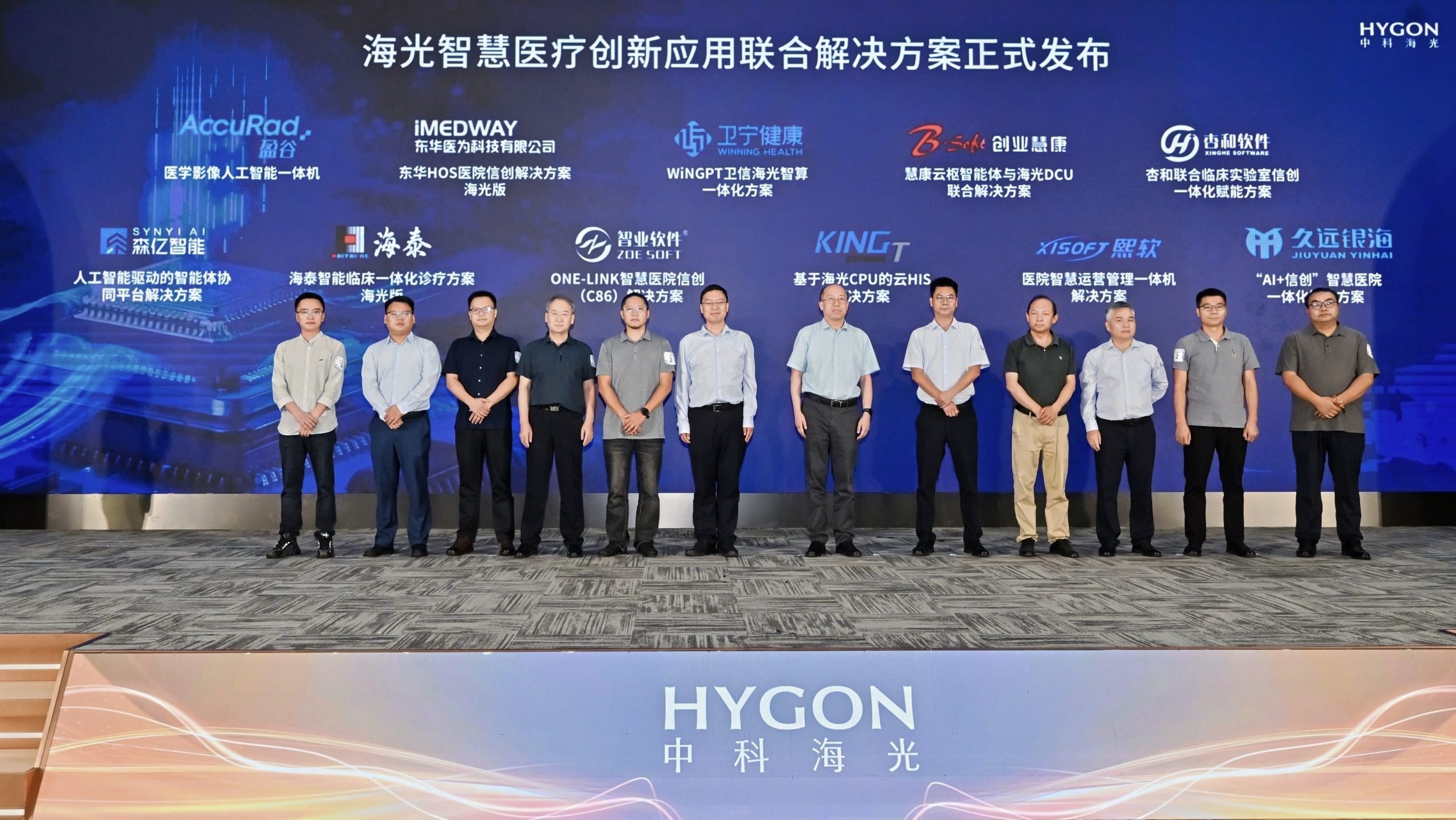 海光已与多家核心医疗ISV完成技术对接与方案共创,并发布了一批“海光C86+DCU智慧医疗创新应用联合解决方案”。如:WiNGPT卫信海光智算一体化方案(卫宁健康)、东华HOS医院信创解决方案海光版(东华医为)、慧康云枢智能体与海光DCU联合解决方案(创业慧康)、基于海光CPU的云HIS解决方案(宁波金唐)、杏和联合临床实验室信创一体化赋能方案(上海杏和)、医院智慧运营管理一体机解决方案(熙软科技)等。
