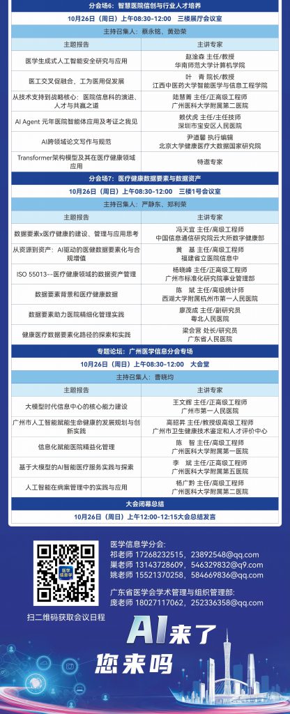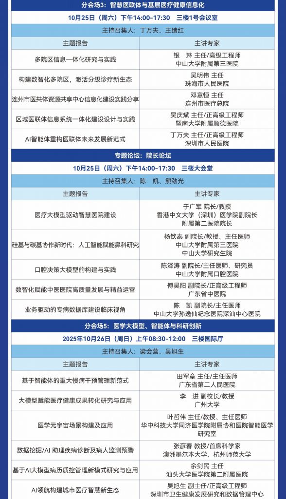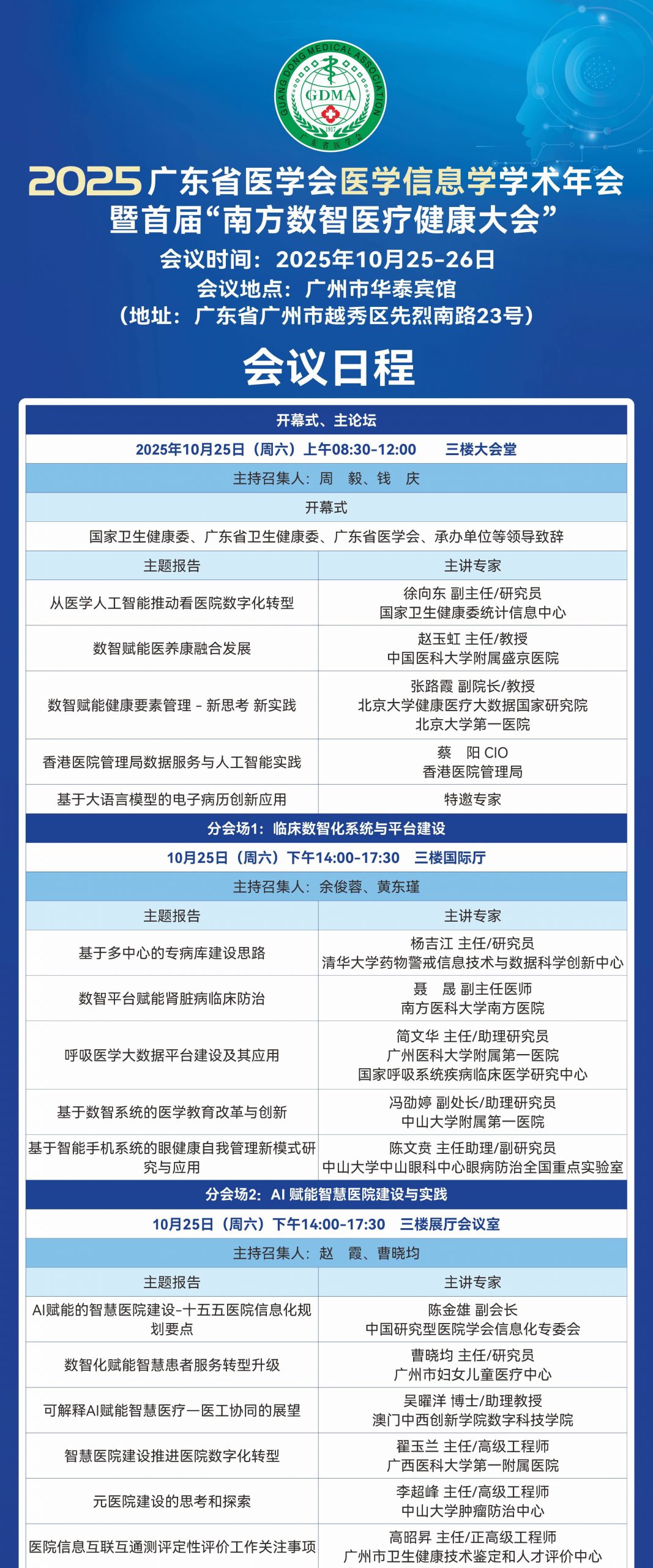 附件:2025年广东省医学会医学信息学学术年会暨首届“南方数智医疗健康大会”大会议程及安排(持续更新)