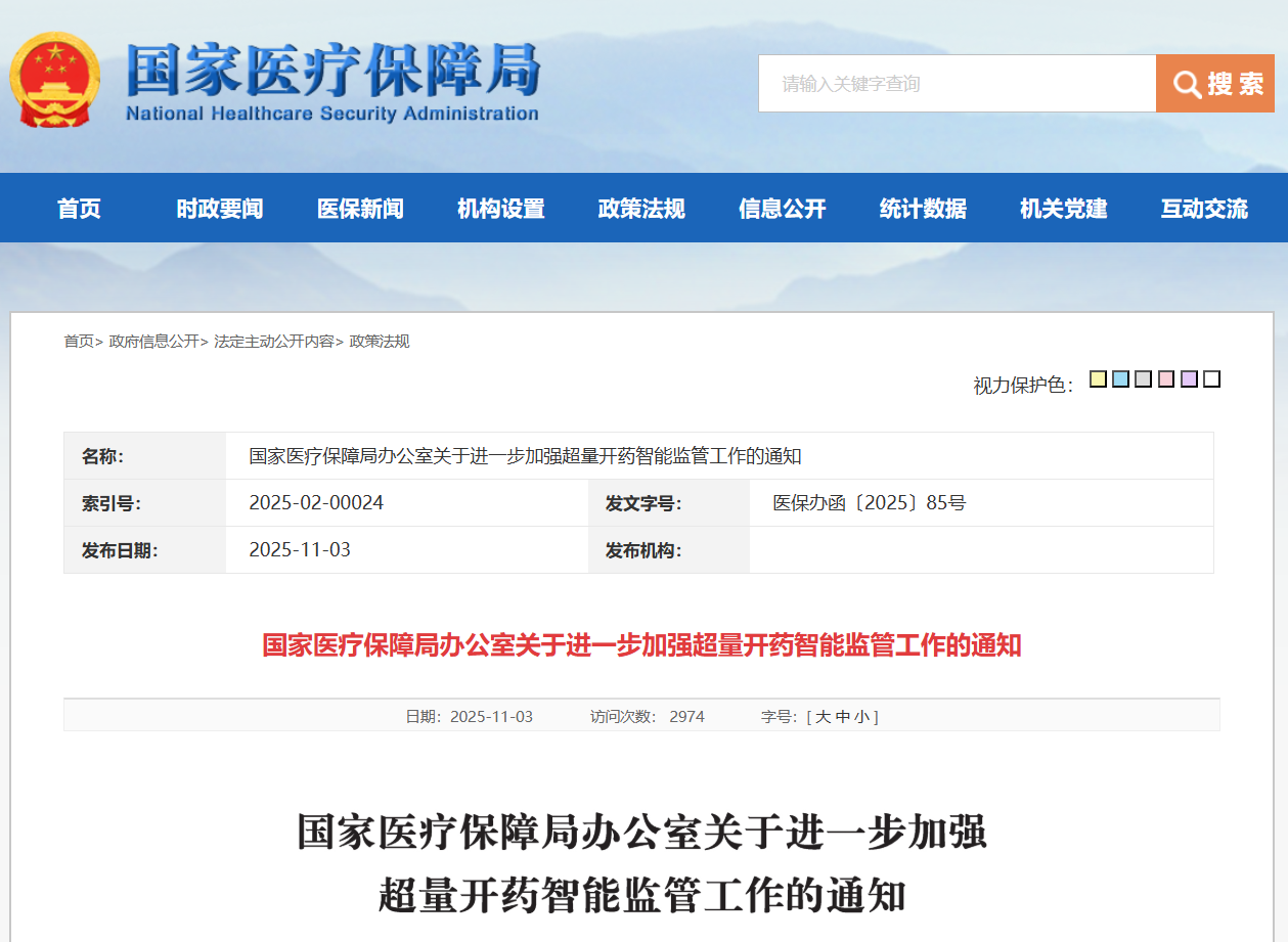 11月3日,国家医疗保障局发布通知,进一步加强超量开药智能监管工作。