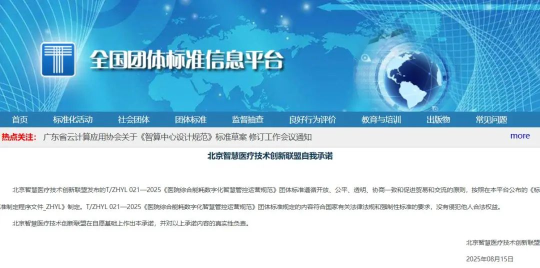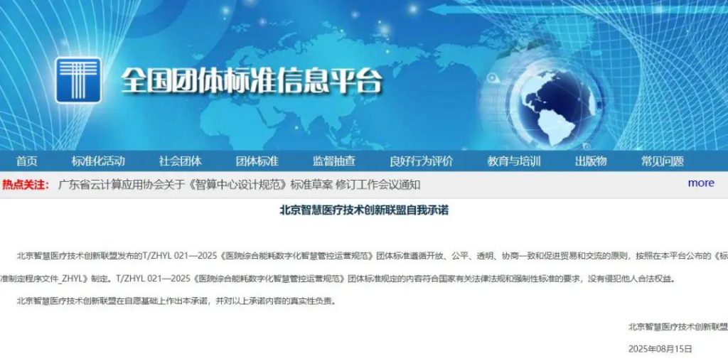 2025年8月15日,由山西省医院协会副会长单位——山西省人民医院主编,山西省医院协会第一届医学工程管理分会会长吕晋栋教授牵头、常委彭盼等担任编委的团体标准《医院综合能耗数字化智慧管控运营规范》(T/ZHYL 021-2025)由北京智慧医疗技术创新联盟批准发布。