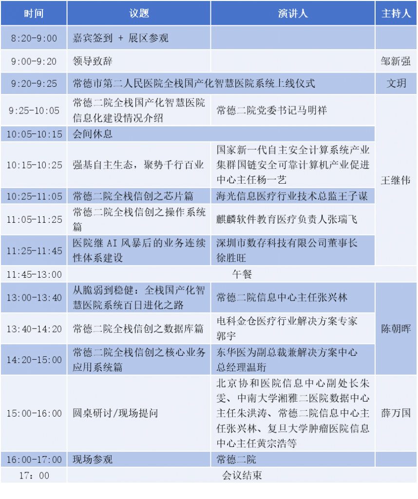 在此,诚邀关注医疗信创工作的全国医疗卫生机构用户信息化主管领导、信息部门负责人、骨干工程师、HIT企业等同道共同参会,现场感受、交流常德二院全栈信创实践经验。
