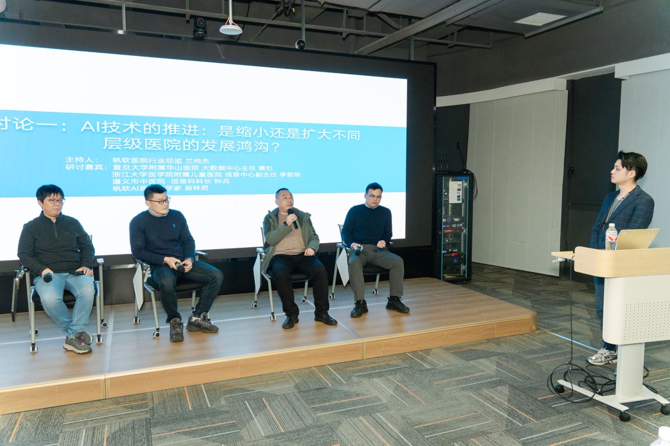 会议圆桌讨论环节,华山医院大数据中心主任黄虹、浙江大学医学院附属儿童医院信息中心副主任李哲明、遵义市中医院信息科科长钟兵、帆软AI首席科学家翁林君,就“医院如何借力AI技术”“医院对医疗AI厂商的期望”“‘十五五’时期医院数智化建设重点”等话题展开讨论。该环节由帆软医院行业总监兰纯杰主持。(根据会议录音整理,未经讲者审阅)