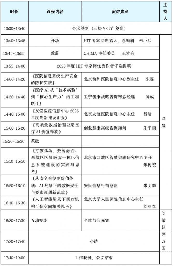 HIT热点趋势研讨会始创于2014年,已连续举办12届。该会议为闭门会议,不限定主题,不对外直播,旨在通过务实交流,为医疗信息化同行们回顾过往、谋划来年工作提供借鉴和启发,成为以北京地区医疗信息主任、全国知名专家为主要参会交流群体并备受HIT行业瞩目的年度“头脑风暴”。