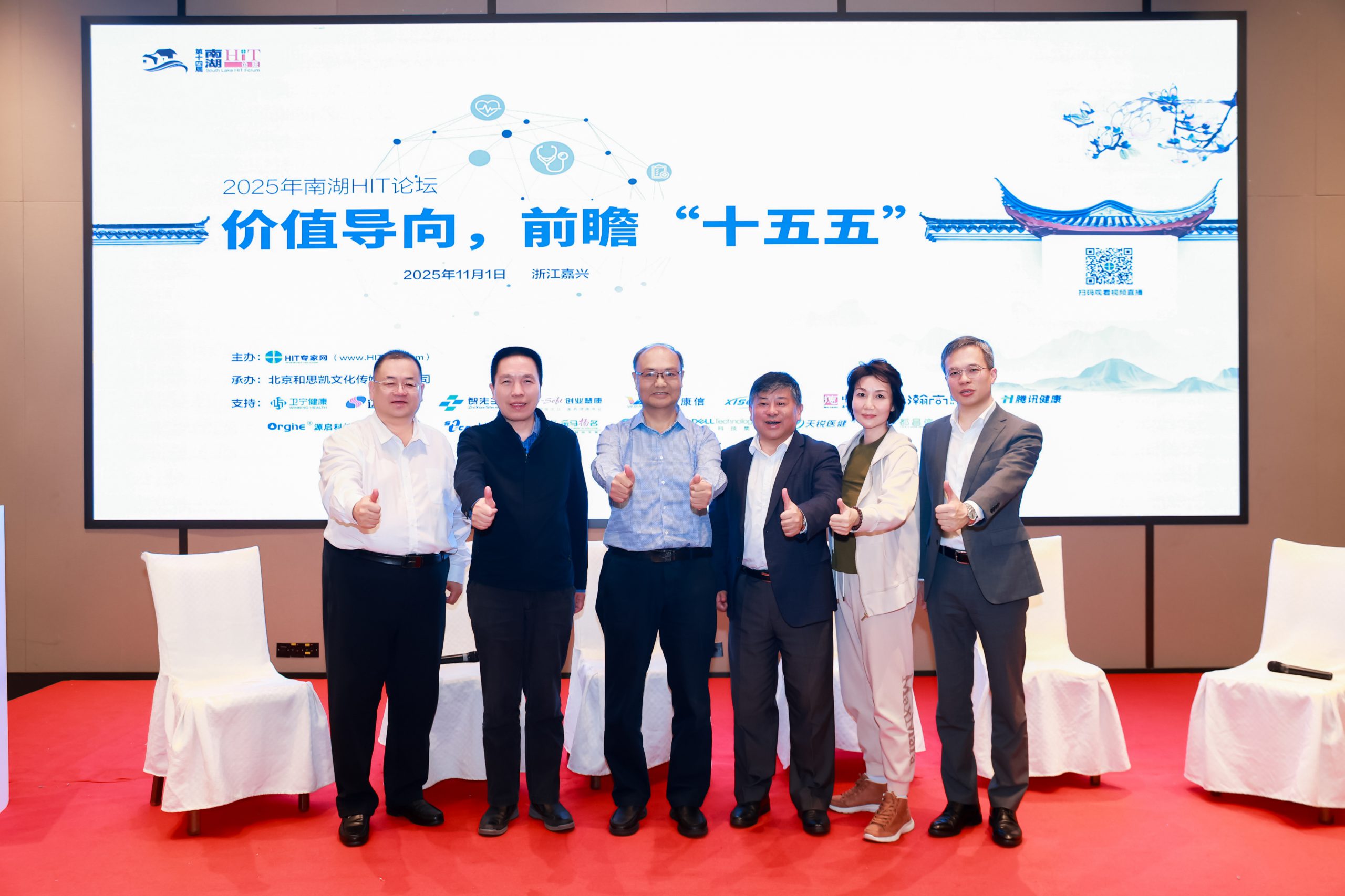 2025年南湖HIT论坛聚焦“价值导向,前瞻‘十五五’”。在“南湖相对论”环节,由中国研究型医院学会信息化专委会副会长、北京高博医疗集团首席信息专家陈金雄担任主持,与中国医院协会信息专业委员会副主任委员薛万国,吉林省卫生健康信息中心主任张启军,浙江医院人工智能与信息化部主任费科锋,贵州医科大学研究员、副教授俞思伟,望海康信董事长段成卉,围绕“‘十五五’期间医疗信息化的显著差异”“医院管理者关注的医疗信息化内容”“医院信息中心是否会转型为利润中心”等问题展开讨论。
