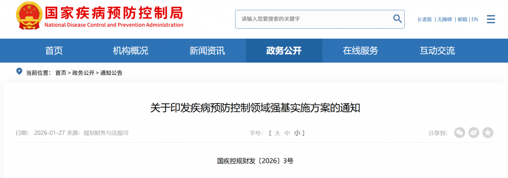 1月27日,国家疾控局、国家发展改革委、国家卫生健康委等六部门印发《疾病预防控制领域强基实施方案》(下称《实施方案》),对2027年、2030年两个时间点的基层疾控体系、设施、能力、数字化等方面提出要求。