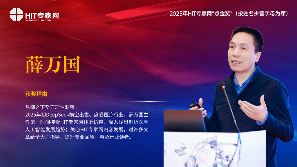 热潮之下坚守理性洞察。2025年初DeepSeek横空出世、席卷医疗行业,薛万国主任第一时间接受HIT专家网线上访谈,深入浅出剖析医学人工智能发展趋势;关心HIT专家网内容发展,对许多文章给予大力指导,提升专业品质,惠及行业读者。