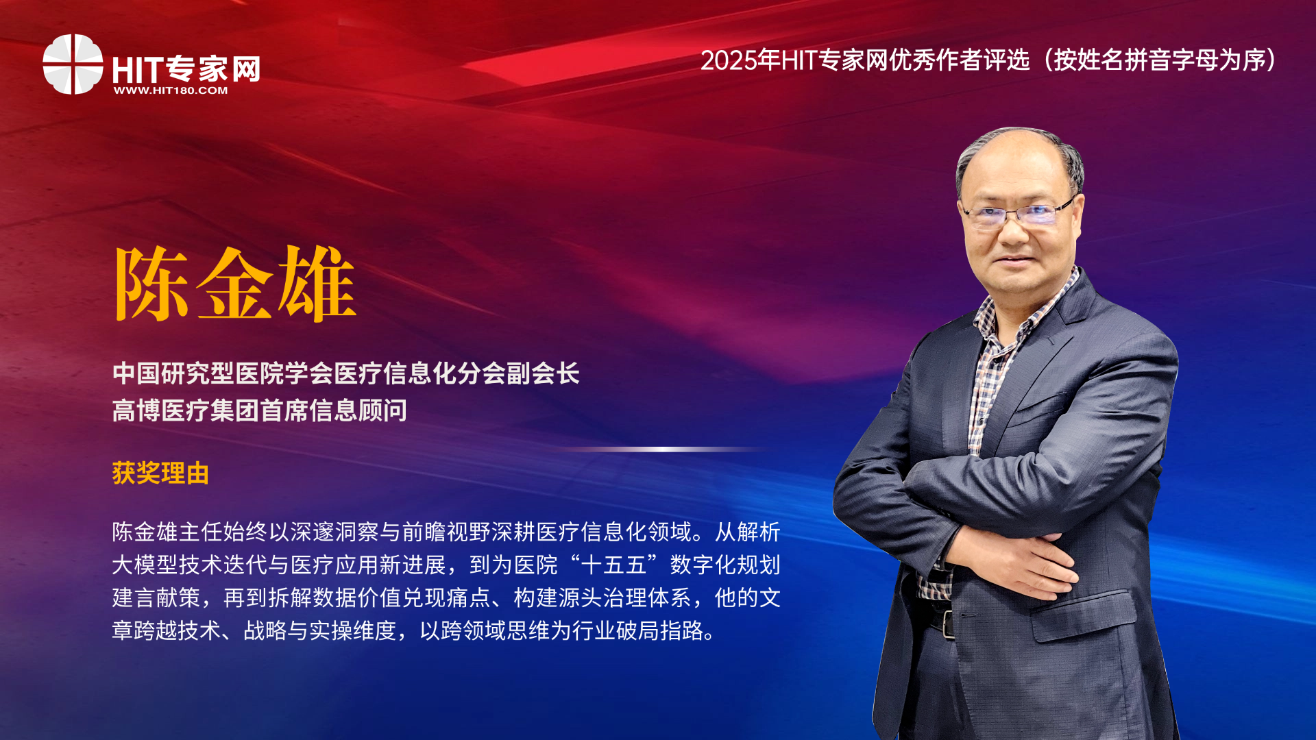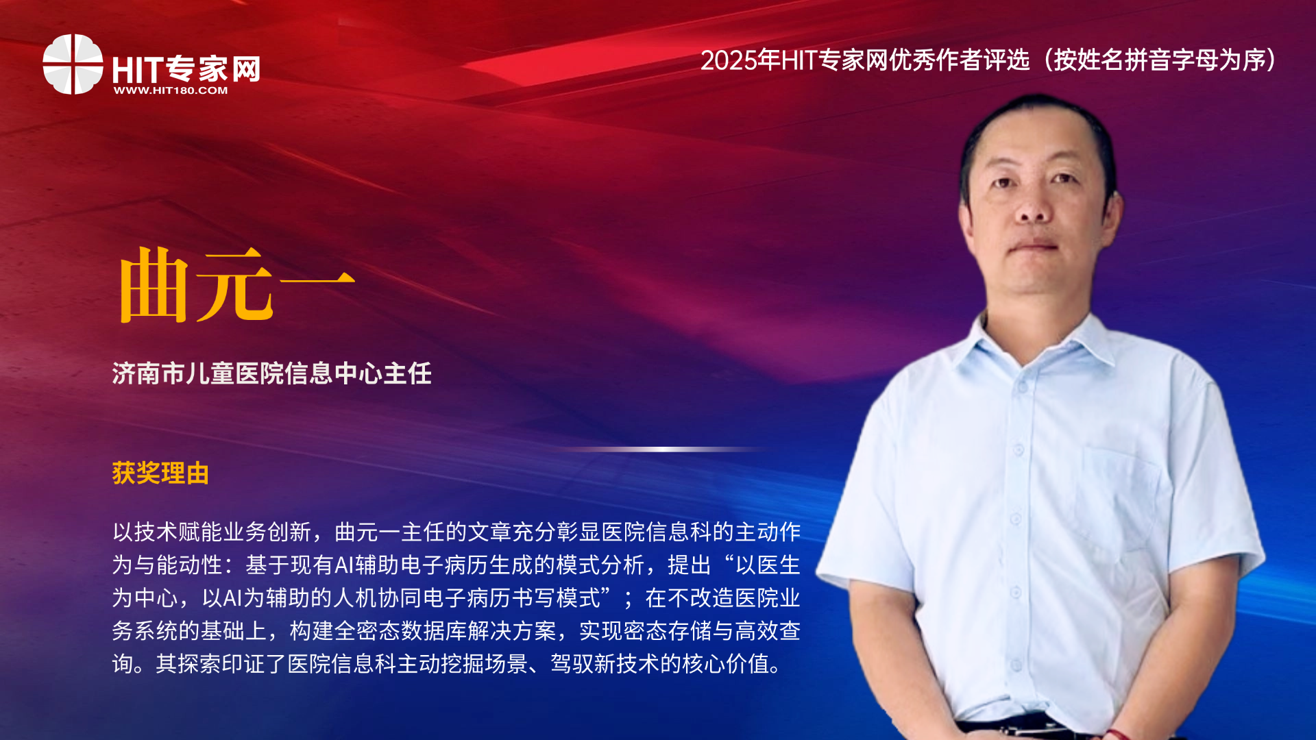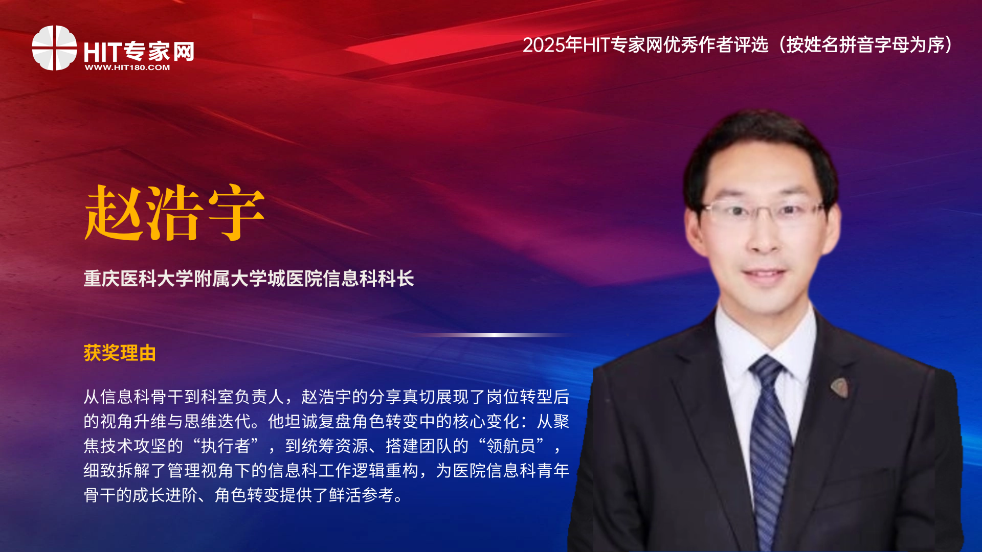 2026年1月31日,在由HIT专家网主办的“2026年HIT热点趋势研讨会”上,2025年HIT专家网优秀作者评选结果正式揭晓:陈金雄、刘新平、陆慧菁、曲元一、石晓君、王继伟、吴恒、赵浩宇、郑西川、朱晨等10位作者荣获“年度优秀作者”;刘海一、薛万国两位HIT专家网学术指导委员荣获“点金奖”。