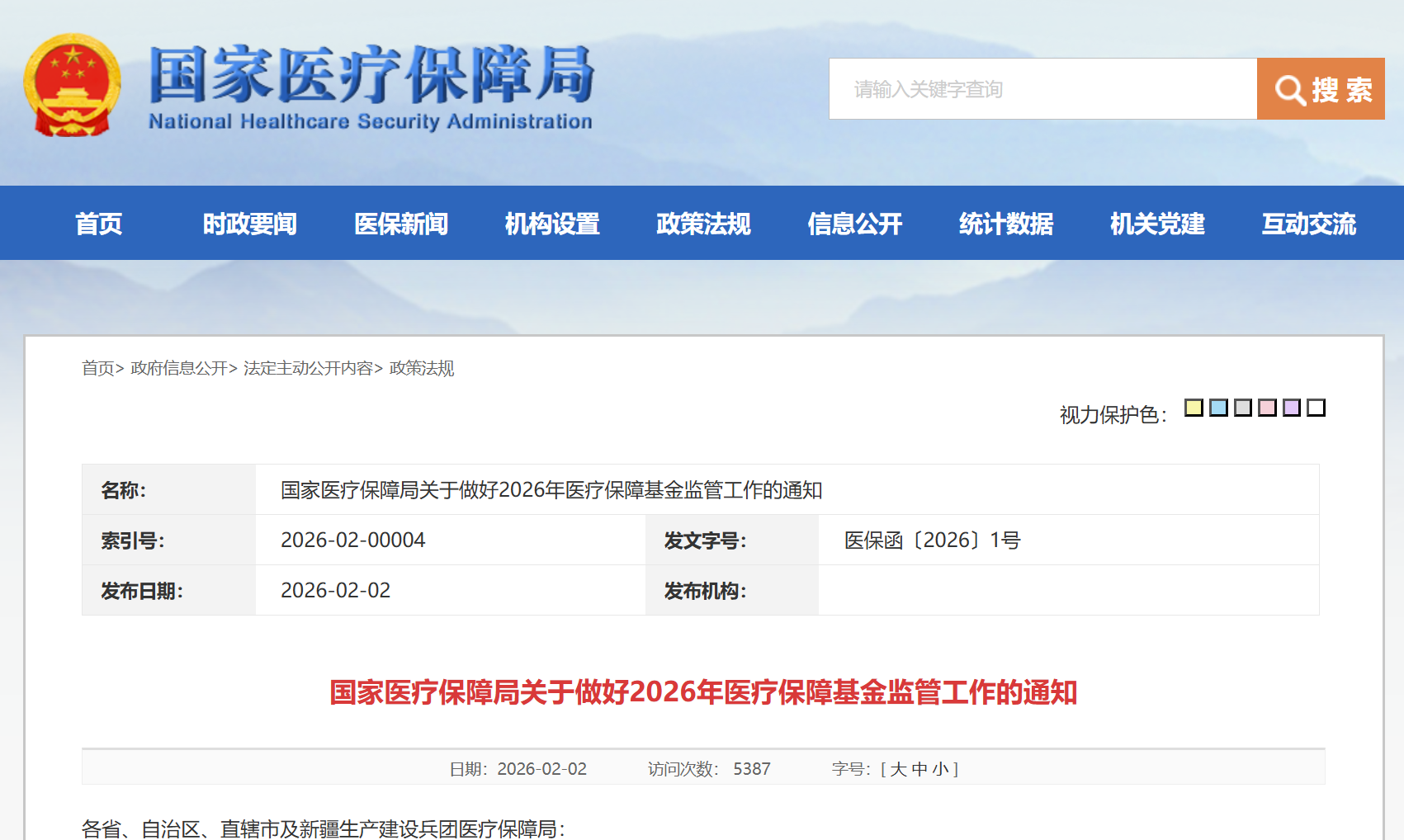 国家医疗保障局关于做好2026年医疗保障基金监管工作的通知