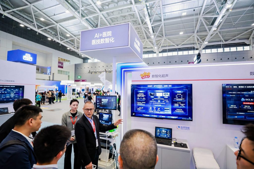 在“创新基座”展区,华为不但展示了如何以昇腾AI算力、分布式存储、星河AI高品质医院网络、F5G全光医院网络、医疗云等为底座,为海量医疗设备联接、数据实时流转,以及大模型与智能体提供高性能、高安全的运行环境,更展现了华为如何让技术、伙伴与场景快速融合,推动创新成果高效走向落地应用。