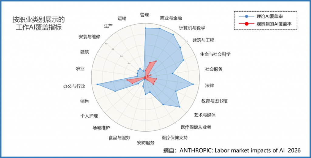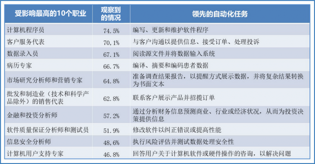 最后,推荐一份Anthropic公司2026年发布的研究报告《Labor market impacts of AI: A new measure and early evidence》。报告列出当前受AI影响最大的10类职业(见图1)。笔者认为,除市场营销、批发制造和金融投资3个领域外,其余岗位均与医疗信息化业务密切相关(见表1)。面对这一趋势,系统化补齐AI能力、完成职业转型,已成为医院IT人与医院CIO的必修课。