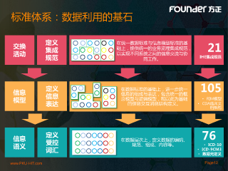 标准体系:数据利用的基石 定义 在统一数据标准与信息模型标准的基 交换 集成 础上,提供统一的业务流程集成规范, 21 活动 以实现不同系统之间的信息交流与协 规范 同工作。 IHE集成规范 定义 在数据标准的基础上,进一步统一 105 信息 信息 信息的组成与表达,包含统一的概 模型 念模型与逻辑模型,和以此为基础 • RIM模型 表达 的信息交互消息结构定义。 • CDA临床文 档架构 定义 76 信息 受控 在数据层次上,定义数据的编码、 语义 规范、组成、内容等。 • ICD-10 词汇 • ICD-9CM3 • 数据元定义 www.PKU-HIT.com Page10