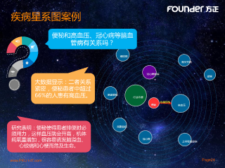 疾病星系图案例 便秘和高血压、冠心病等脑血 管病有关系吗? 大数据显示:二者关系 紧密,便秘患者中超过 66%的人患有高血压。 研究表明:便秘使得患者排便时必 须用力,这样血压就会升高,机体 耗氧量增加,很容易诱发脑溢血、 心绞痛和心梗而危及生命。 www.PKU-HIT.com Page24