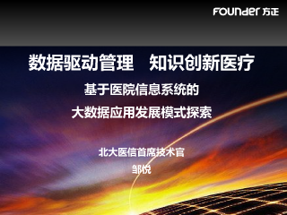 数据驱动管理 知识创新医疗 基于医院信息系统的 大数据应用发展模式探索 北大医信首席技术官 邹悦