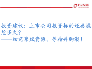 投资建议:上市公司投资标的还要尴 尬多久? ——细究禀赋资源,等待并购潮!
